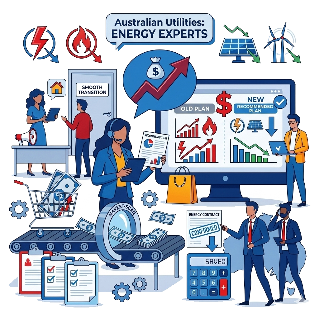 Australian Utilities and our team of energy experts are committed to help in finding you an energy offer suited to you from our panel of energy retailers. We help you to stay on top of things by doing all the heavy lifting for you. Our team does this by analyzing and understanding your existing energy requirements, doing a market-scan with our partner energy retailers across Australia to obtain winning electricity rates and gas prices.